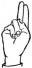 На ћирилици написано НАДЈА КОЈОВИЋ састоји се из 12 слова [?]. Исписано ћириличном једноручном азбуком за глувонеме: